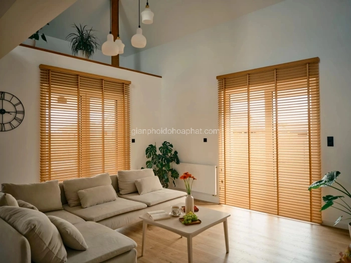 - Rèm gỗ tự nhiên: Được làm từ gỗ tự nhiên như gỗ sồi, gỗ basswood, gỗ óc chó, mang vẻ đẹp sang trọng và đẳng cấp.