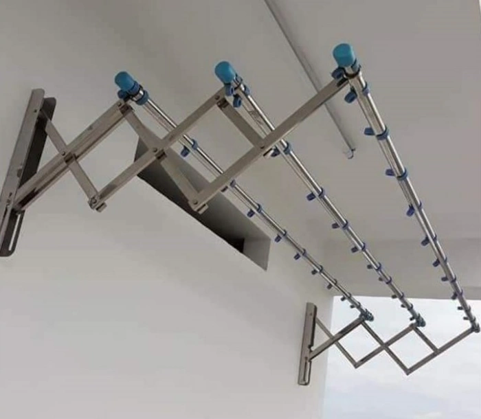 Giàn phơi gắn tường inox 201 thích hợp với các bề mặt tường vững chắc như tường gạch, bê tông hoặc khung sắt. Cấu trúc này lý tưởng cho các không gian như ban công nhỏ, sân phơi hẹp hoặc các vị trí không thể gắn giàn phơi trần.
