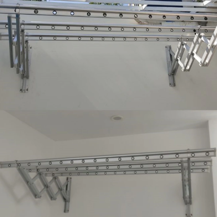 Sau khi phơi xong, có thể thu lại sát tường chỉ bằng một thao tác nhẹ. Điều này không chỉ giúp tiết kiệm diện tích mà còn mang lại sự gọn gàng cho không gian sống.