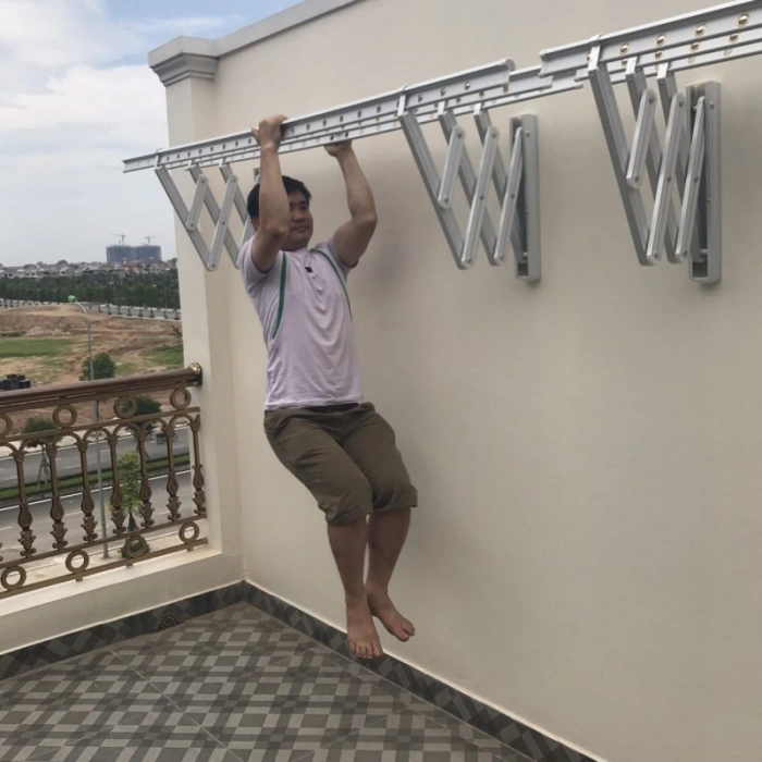 Việc sử dụng giàn phơi thông minh gắn tường Hàn Quốc vô cùng đơn giản: kéo nhẹ tay đỡ để mở rộng thanh phơi, gấp lại sau khi sử dụng. Lưu ý siết chặt vít cố định để đảm bảo an toàn.