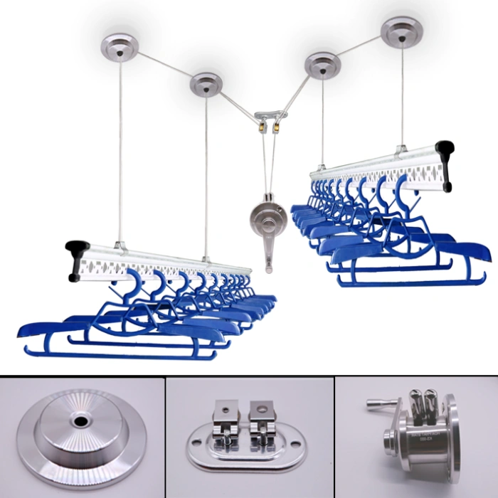 Thanh phơi được sản xuất bằng hợp kim nhôm đúc nguyên khối, phủ lớp sơn tích điện chống oxy hóa và có tới 80 lỗ treo, tiện lợi khi phơi đồ số lượng lớn. Cụm đĩa truyền bằng inox không gỉ, kết hợp với puli đồng có vòng bi dẫn hướng giúp nâng cao độ bền và khả năng chịu lực.