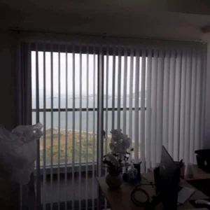 Mành sáo lá dọc với thiết kế phong phú và mượt mà rất phù hợp cho không gian văn phòng. Màu sắc trung tính của rèm là sự kết hợp lý tưởng với các yếu tố tự nhiên, mang lại không gian thoáng đãng và ánh sáng dễ chịu. Bạn có thể dễ dàng điều chỉnh ánh sáng vào phòng, giúp không gian văn phòng trở nên ấm cúng và thoải mái hơn.