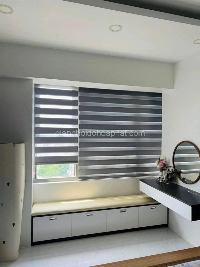 Rèm cửa sổ cầu vồng có cơ chế hoạt động đơn giản. Bạn có thể điều chỉnh dây kéo lên xuống để điều chỉnh lượng ánh sáng theo ý muốn. Bằng cách thay đổi các lớp vải có vân sáng và vân tối xen kẽ, bạn có thể lấy sáng một phần, giúp không gian không quá tối mà vẫn đảm bảo được độ riêng tư cần thiết.