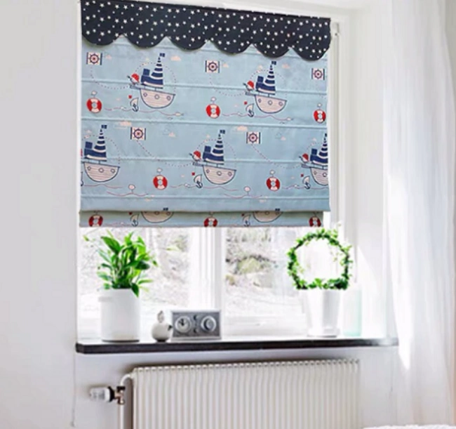 Họa tiết được in hoặc thêu trên rèm có thể là hình siêu nhân, xe ô tô, động vật hoặc các chủ đề thiên văn như sao, hành tinh – phù hợp với tư duy sáng tạo và trí tưởng tượng phong phú của trẻ. Những chiếc rèm roman màu xanh không chỉ đẹp mà còn tạo nên một thế giới riêng, nơi bé có thể tự do khám phá và phát triển cá tính.