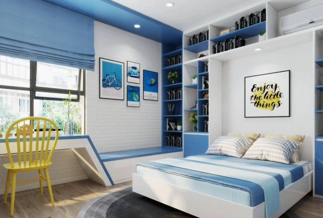 Với bé trai, những gam màu như xanh dương, xanh lá, xanh da trời hoặc xanh navy thường được yêu thích. Đây là những màu thể hiện tính hiếu động, ham khám phá, đồng thời mang lại cảm giác dịu mát, giúp cân bằng cảm xúc cho trẻ.