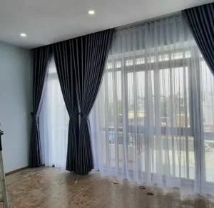 Nếu bạn muốn thêm một chút màu sắc trung tính vào phòng nhưng không muốn sử dụng quá nhiều hoa văn, rèm vải phòng khách đẹp giá rẻ là lựa chọn lý tưởng. Mẫu rèm vải trơn màu be kết hợp hoàn hảo với các gam màu kem và nâu, tạo nên sự tinh tế và ấm cúng cho không gian. Kiểu dáng đơn giản nhưng đẹp mắt của rèm sẽ mang lại vẻ hiện đại và thanh lịch cho cả căn phòng.
