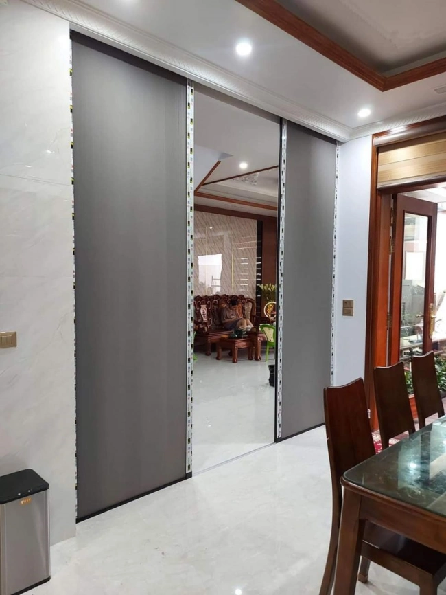 Vách ngăn kéo hai bên: Tạo sự cân đối và tiện dụng cho những khu vực phòng khách lớn hoặc không gian cần chia đôi.